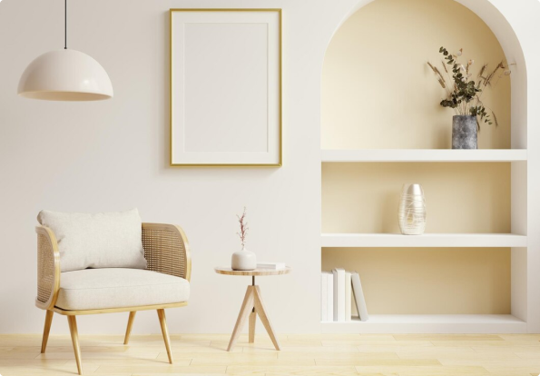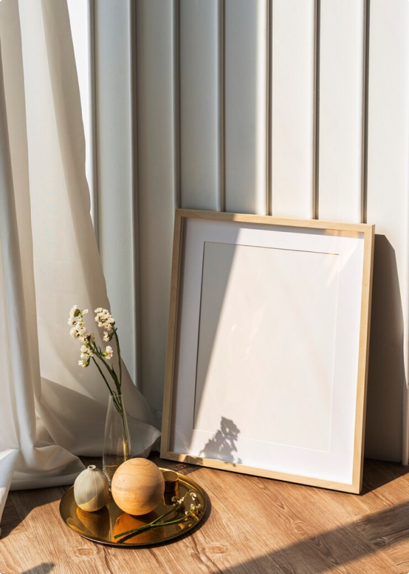 You'll want to stick to clean lines and neutral tones. Picture frames with flat facades and natural finishes paired with simple art, like line drawings, typography prints or organic shapes will add those finishing touches to your minimalist space.