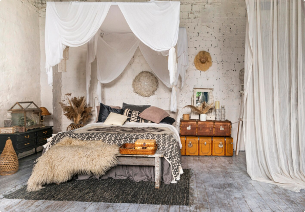 For a space full of life and culture, look no further than bohemian interior design. Things that work best in bohemian spaces are treasures, trinkets and furniture that look like it was collected over time from all over the world featuring bold, earthy tones, intricate patterns and mixed textures and mediums.