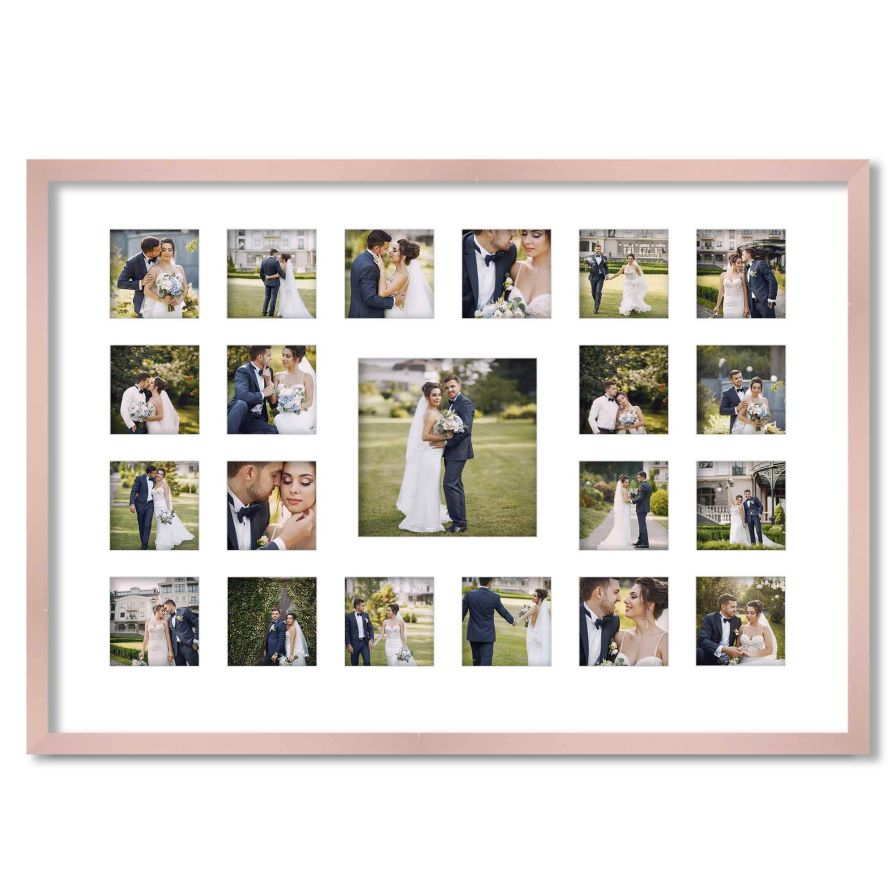 Rose Gold Wedding Photo Collage Frame for 21 Photos
