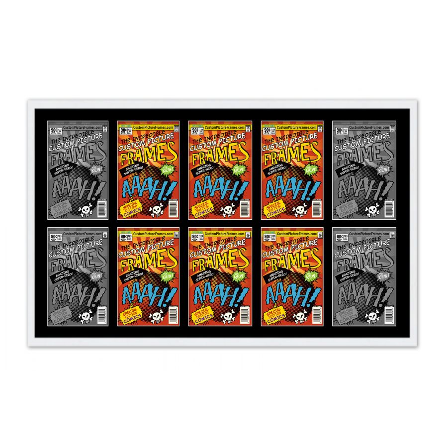 White Comic Book Frame for 10 Comic Books with Black Mat for Current Age Comic Books