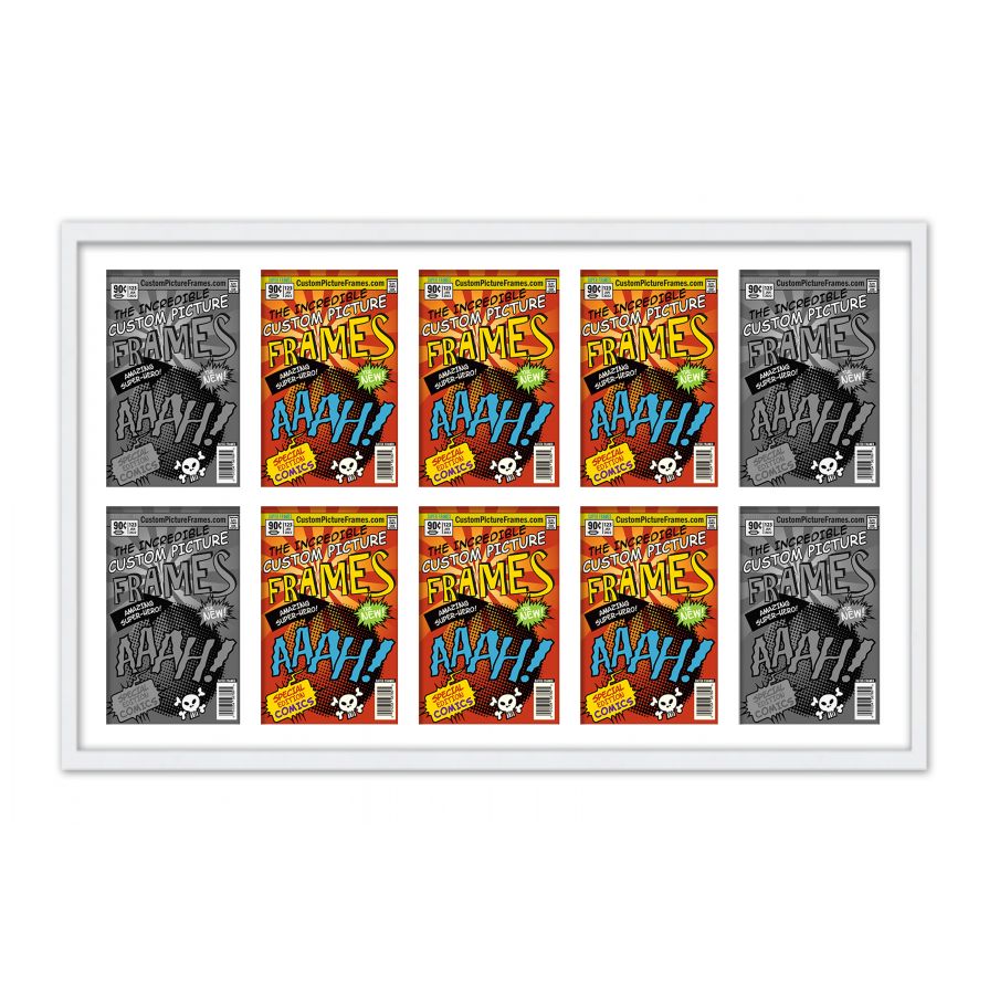 White Comic Book Frame for 10 Comic Books with White Mat for Silver Age (Published Between 1956 and 1970) Comic Books