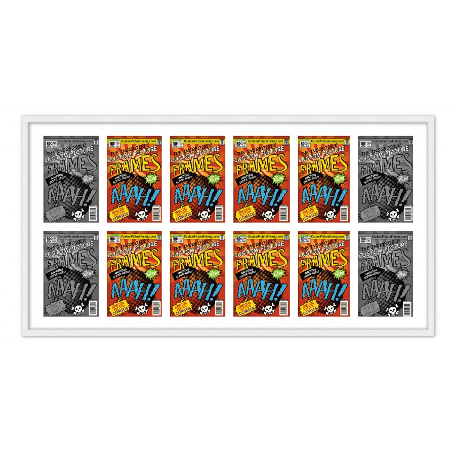 White Comic Book Frame for 12 Comic Books with White Mat for Silver Age (Published Between 1956 and 1970) Comic Books