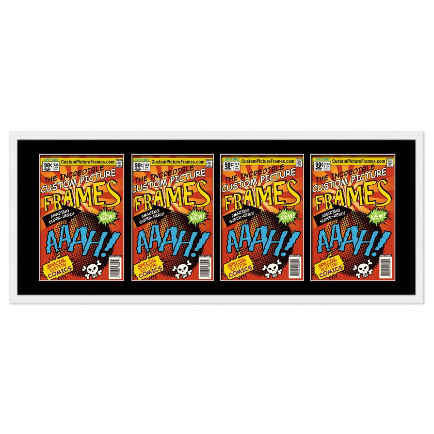 Product Name White Comic Book Frame for 4 Comic Books with Black Mat for Current Era (Published After 1985) Comic Books