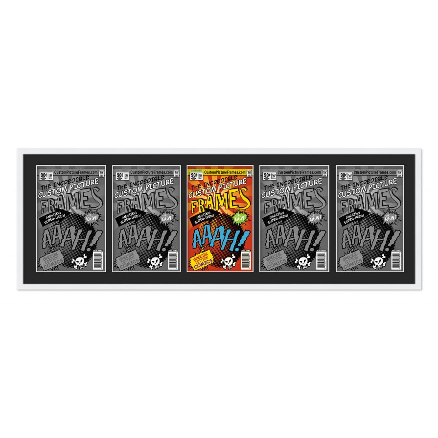White Comic Book Frame for 5 Comic Books with Black Mat for Bronze Age (Published Between 1970 and 1985) Comic Books