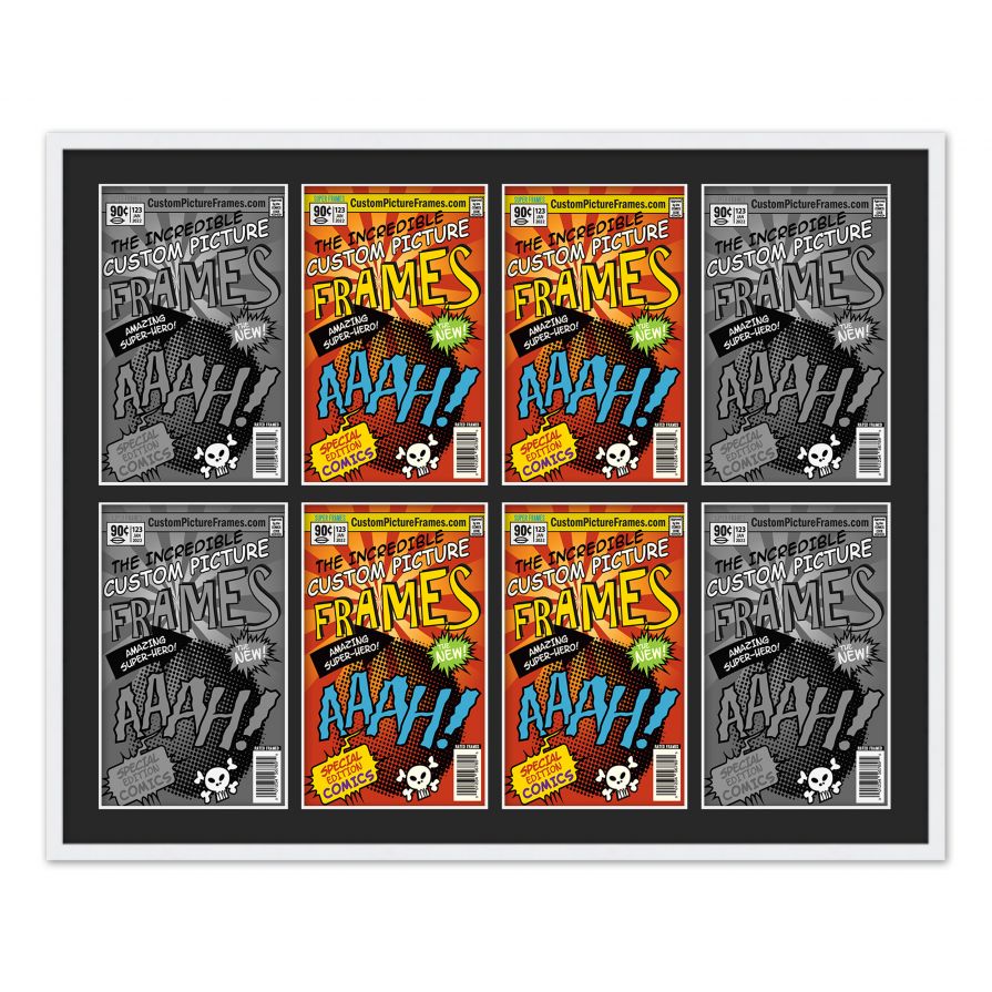 White Comic Book Frame for 8 Comic Books with Black Mat for Bronze Age (Published Between 1970 and 1985) Comic Books