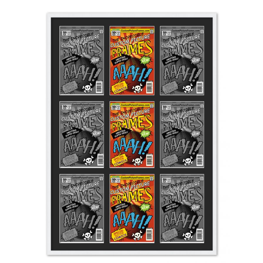 Product Name White Comic Book Frame for 9 Comic Books with Black Mat for Bronze Age (Published Between 1970 and 1985) Comic Books