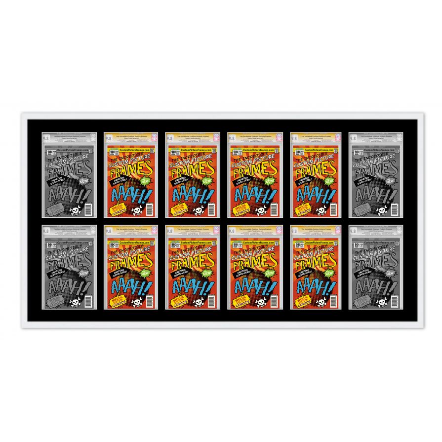 White Graded Comic Book Frame for 12 Comic Books with Black Mat