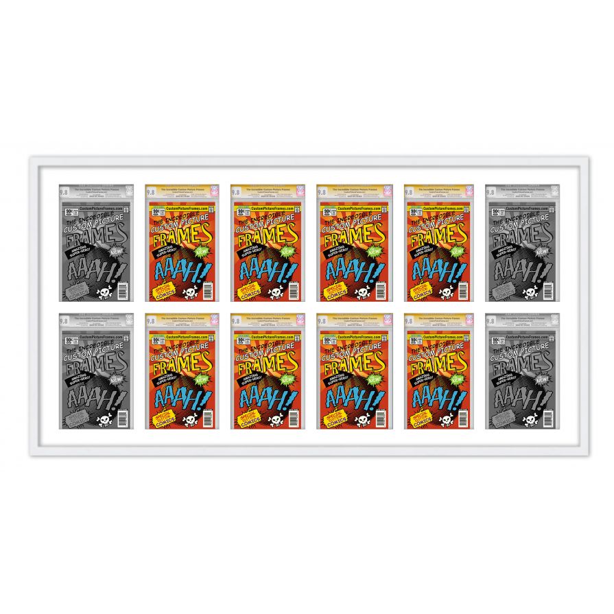 White Graded Comic Book Frame for 12 Comic Books with White Mat