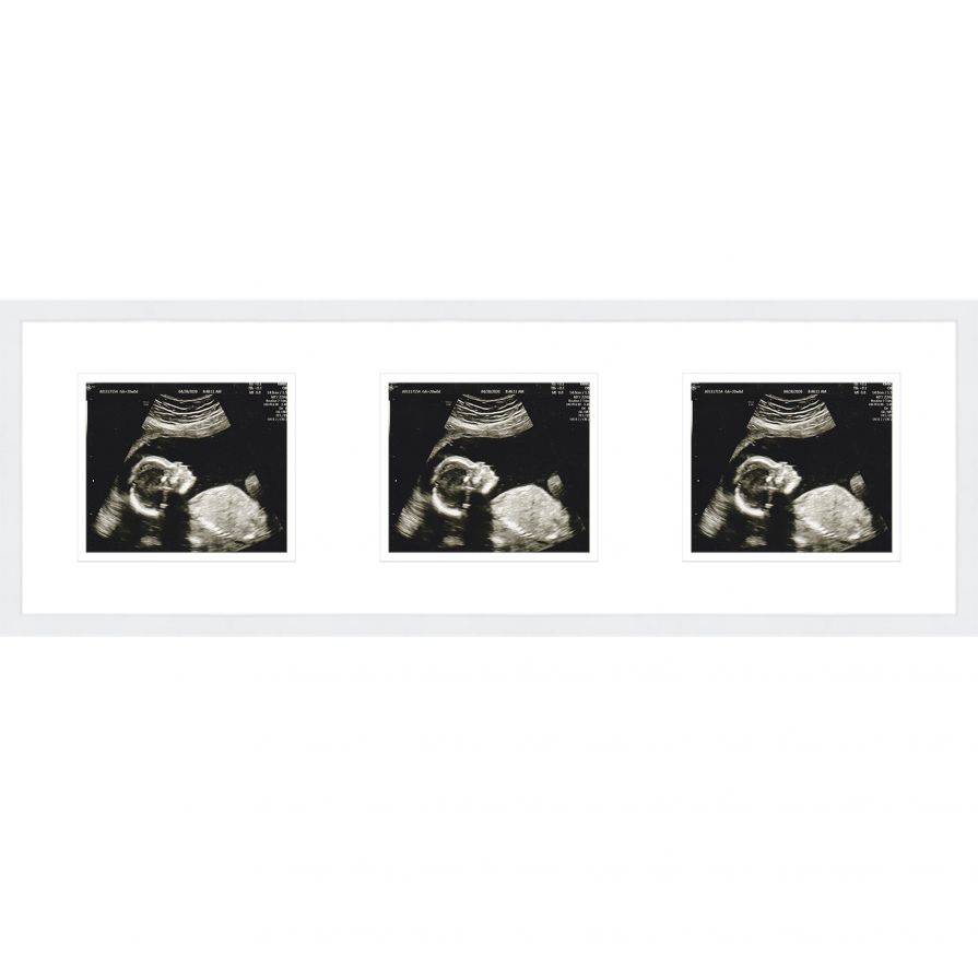 White Sonogram Frame with White on White Double Mats for 3 Images