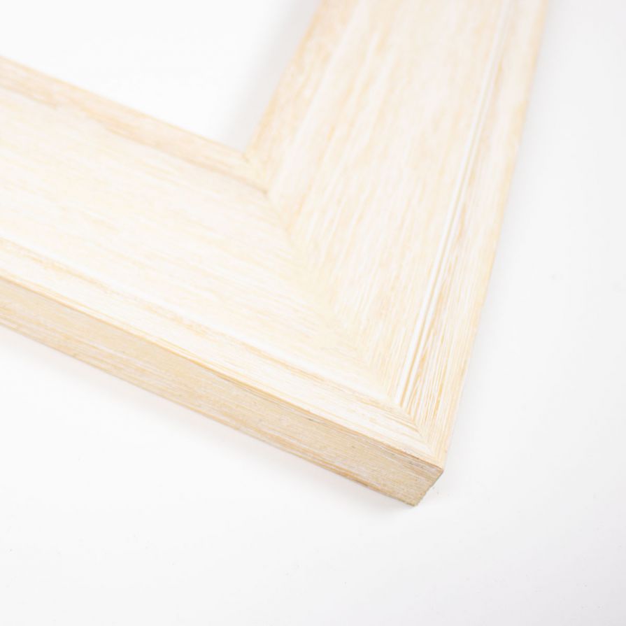 This frame features a whitewashed finish with variations in the grain pattern and color tone to highlight the natural characteristics of the wood. This distinctive weathering is what gives this photo frame its unique charm. At 3" wide, this wood moulding was designed to make a statement. The subtle wood grain adds a hint of texture while maintaining a clean look.